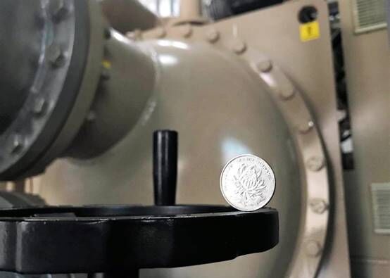 穩(wěn)定性體驗(yàn):立不住VS立得住 為了直觀感受兩個(gè)空調(diào)機(jī)組的運(yùn)行穩(wěn)定性差異,講解人員請(qǐng)嘉賓分別在兩個(gè)機(jī)組上立起1元硬幣。在傳統(tǒng)中央空調(diào)的主機(jī)上,整個(gè)硬幣一直在找平衡點(diǎn),很難站穩(wěn),即使立住,松開手后大概不到30秒,也就倒下了,立不住。 同樣的,在海爾磁懸浮空調(diào)的主機(jī)上,硬幣一立就成,并一直保持立著的狀態(tài)紋絲不動(dòng)!胺旁谶@里一天都沒事兒!睋(jù)機(jī)房負(fù)責(zé)人表示。