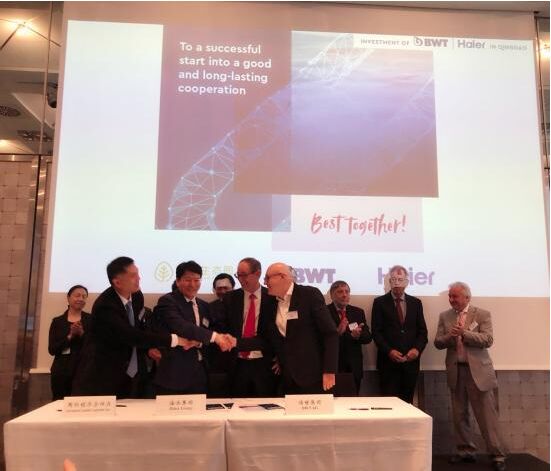 6月6日,海爾集團(tuán)與BWT集團(tuán)在德國簽訂戰(zhàn)略合作協(xié)議,雙方整合各自在凈水技術(shù)研發(fā)、大規(guī)模定制、觸點網(wǎng)絡(luò)等領(lǐng)域的優(yōu)勢,以資本合作為紐帶,強(qiáng)強(qiáng)聯(lián)合,共建全球一流水生態(tài),為中國用戶定制高端凈水解決方案。據(jù)悉,雙方合資成立的制造工廠將落戶青島西海岸新區(qū)中德生態(tài)產(chǎn)業(yè)園。 中國駐杜塞爾多夫總領(lǐng)事馮海陽、青島市委常委、市委秘書長祝華、杜賽爾多夫副市長Wolfgang Scheffler、BWT集團(tuán)CEO Andreas Weissenbacher、海爾集團(tuán)副總裁解居志等出席了此次簽約儀式。杜塞爾多夫工商會榮譽主席、德國電信監(jiān)事會主席李寧雅,杜塞爾多夫市副市長謝福剛,北威州經(jīng)濟(jì)部國際事務(wù)局局長凱爾克曼,德國亞太經(jīng)濟(jì)委員會首任主席、西門子前董事長兼CEO馮必樂,BWT集團(tuán)董事長Weissenbacher Andreas先后致辭,并見證雙方簽約。