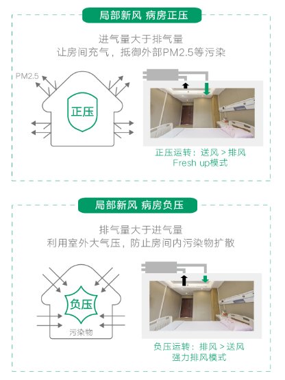 舒適+1:“專業(yè)新風(fēng)提案”暢享健康呼吸 現(xiàn)代醫(yī)院人流量大,人員密度也高,極端情況下,甚至住院部走廊也會(huì)增設(shè)病床提供給病患。此時(shí)引入室外新鮮空氣,降低醫(yī)院內(nèi)部CO2、細(xì)菌、病毒單位濃度就變得十分重要了。