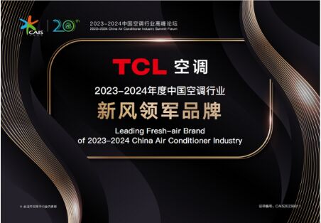 近日,在2023-2024中國空調(diào)行業(yè)高峰論壇上,TCL空調(diào)憑借新風(fēng)賽道的杰出表現(xiàn),一舉斬獲2023-2024年度中國空調(diào)行業(yè)“新風(fēng)領(lǐng)軍品牌”,TCL空調(diào)已三度蟬聯(lián)該獎(jiǎng)項(xiàng)。同時(shí),在近日舉辦的“美好生活 健康家--2023健康人居公益發(fā)展大會(huì)”上,TCL空調(diào)獲頒“健康人居卓越品牌”獎(jiǎng)。TCL空調(diào)屢獲殊榮,也與TCL空調(diào)在技術(shù)創(chuàng)新水平和品牌實(shí)力方面的突出表現(xiàn)密切相關(guān)。