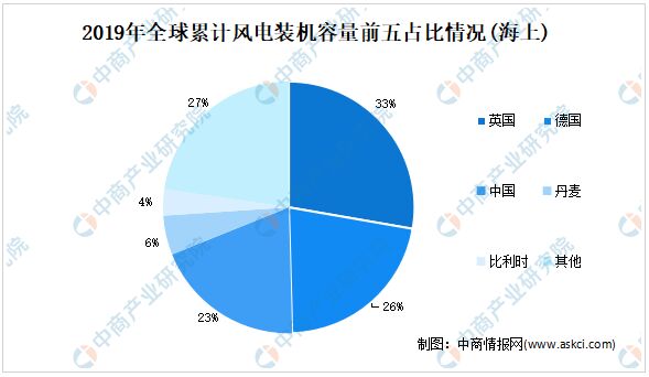中國是全球風電裝機容量第一大國。數(shù)據(jù)顯示,截至2019年,中國累計風電裝機容量為236.40吉瓦,占全球累計風電裝機容量的36.34%。其中,陸上累計裝機容量229.56吉瓦,排名全球第一;海上累計裝機容量6.84吉瓦,排名世界第三。