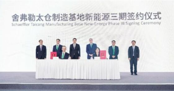 在新能源二期工廠啟用儀式上,舍弗勒與太倉高新區(qū)簽訂新能源三期項目投資協(xié)議,繼續(xù)加碼新能源業(yè)務,擴大在華投資。新能源三期項目占地約70,000平方米,投資額達2億歐元(約合15億人民幣),聚焦新能源電驅(qū)動領域,涵蓋如輪轂電機、電橋減速箱、混動變速箱等新能源汽車產(chǎn)品的生產(chǎn)制造,以及物流倉儲等配套設施。