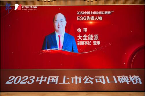 11月17日,由每日經(jīng)濟新聞發(fā)起的“中國上市公司口碑榜”評選獲獎名單于第十二屆中國上市公司高峰論壇上正式揭曉。大全能源副董事長徐翔憑借其帶領(lǐng)企業(yè)ESG治理實踐,持續(xù)深化企業(yè)可持續(xù)發(fā)展的卓越表現(xiàn),榮獲2023年度“ESG先鋒人物獎”。此次ESG先鋒人物獎的評選,評價體系立足于自身海量結(jié)構(gòu)化數(shù)據(jù)、AI機器學(xué)習(xí)技術(shù)等,綜合上市公司各類公告、媒體輿情、政府機構(gòu)及第三方等數(shù)據(jù)來源,形成指標數(shù)據(jù)庫;同時運用多種算法實現(xiàn)指標數(shù)據(jù)的提取、計算和評級結(jié)果輸出,加工成評價結(jié)果數(shù)據(jù)庫,最終實現(xiàn)上市企業(yè)的ESG績效的有效量化,獎項的科學(xué)性和含金量廣受各界認可。作為今年新設(shè)重磅獎項之一,“ESG先鋒人物獎”的關(guān)注度與份量不言而喻。此次徐翔獲此殊榮,一方面,源于徐翔以先進的ESG理念引領(lǐng)大全能源發(fā)展的出色實踐;另一方面,也正是業(yè)界對于大全能源積極踐行ESG可持續(xù)發(fā)展、推動綠色轉(zhuǎn)型先鋒地位的高度認可。