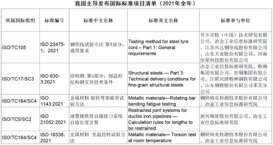 2022年3月8日,市場(chǎng)監(jiān)管總局標(biāo)準(zhǔn)創(chuàng)新管理司公開了2021年ISO發(fā)布的由我國(guó)牽頭制修訂的國(guó)際標(biāo)準(zhǔn)情況。其中,鋼鐵領(lǐng)域2021年主導(dǎo)發(fā)布了5項(xiàng)國(guó)際標(biāo)準(zhǔn)。