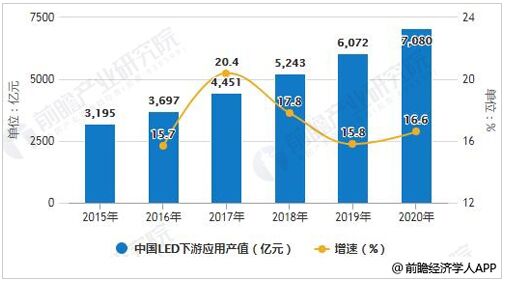 2015-2020年中國LED下游應(yīng)用產(chǎn)值統(tǒng)計及增長情況預(yù)測