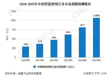 據(jù)前瞻產(chǎn)業(yè)研究院《智能照明行業(yè)分析報告》數(shù)據(jù)顯示:2013年,全球智能照明市場行業(yè)規(guī)模約57.57億美元,其中燈具和相關(guān)配件市場規(guī)模約為12.87億美元;2015年,全球智能照明市場規(guī)模達到78.3億美元,增長十分迅猛。按照當(dāng)前發(fā)展勢頭,預(yù)計2020年可達243.41億美元,其中燈具和相關(guān)配件市場規(guī)模約為87.1億美元,占比超過5%,年復(fù)合增長率超過20%。 國內(nèi)市場方面,2022年,中國智能照明行業(yè)市場規(guī)模約為431億元,年增長率在23%左右。