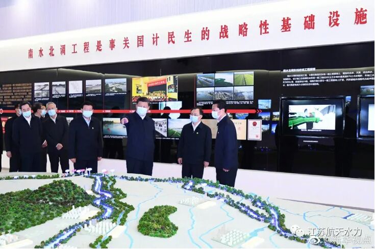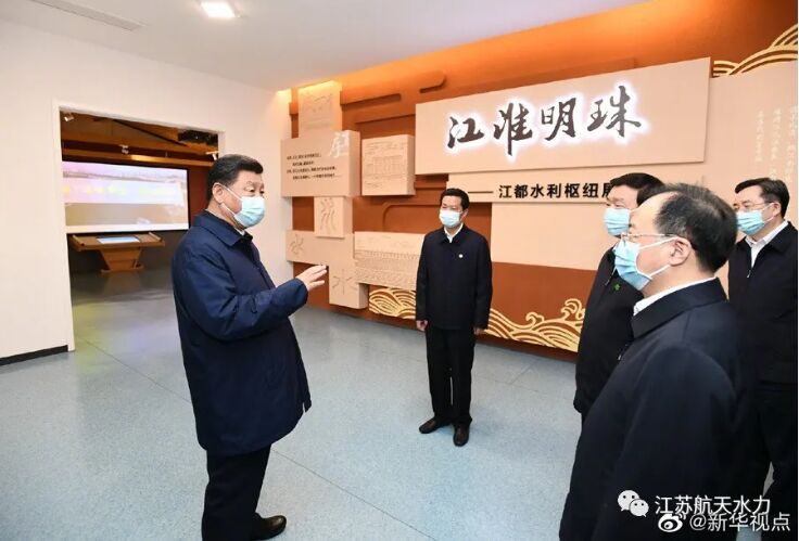 習(xí)近平總書記考察江都水利樞紐工程現(xiàn)場(chǎng) (圖片來源:新華視點(diǎn))