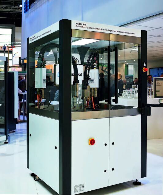 總部位于德國(guó)施泰因哈根的 Plasmatreat 有限責(zé)任公司是一家專(zhuān)為高效表面處理和環(huán)保生產(chǎn)工藝提供等離子體系統(tǒng)的制造商,公司在去年的 2019 年德國(guó)杜塞爾多夫橡塑展 K 展上展出了一款全新的等離子體處理裝置。該處理裝置創(chuàng)造性地采用了倍福的 XPlanar 平面磁懸浮輸送系統(tǒng)實(shí)現(xiàn)高精度和靈活的工件輸送。XPlanar 取代了以前用于輸送 PCB 板等敏感元件的系統(tǒng),并且無(wú)需安裝復(fù)雜的六軸機(jī)器人和直線電機(jī)。 等離子體處理裝置可以將不同材料的表面處理分為兩個(gè)階段,Plasmatreat 的設(shè)計(jì)負(fù)責(zé)人 Jochen Stichling 闡述道:“在第一階段,基板被移動(dòng)到噴嘴下方進(jìn)行清潔和活化。在第二階段,用噴嘴噴涂功能性涂層!彼忉?zhuān)驹谶@方面一直專(zhuān)注于創(chuàng)新:“我們需要一個(gè)處理速度快、完全可編程且無(wú)磨損的系統(tǒng)來(lái)輸送工件。而在定制化編程軌跡和行程方面,倍福的 XPlanar 平面磁懸浮輸送系統(tǒng)是不二之選。” 由可自由懸浮的動(dòng)子組成的平面電機(jī)輸送系統(tǒng) XPlanar 平面磁懸浮輸送系統(tǒng)將可以隨意排列的傳輸平面模塊與懸浮在其上方的動(dòng)子托盤(pán)的多維定位能力完美結(jié)合于一體,可以實(shí)現(xiàn)快速、靈活及高精度定位。動(dòng)子可以在二維平面上進(jìn)行無(wú)摩擦、無(wú)接觸的運(yùn)動(dòng),最高速度可達(dá) 4 m/s,加速度可達(dá) 2 g,重復(fù)定位精度可達(dá) 50 μm;運(yùn)行過(guò)程中幾乎不會(huì)產(chǎn)生任何噪音或機(jī)械磨損。該系統(tǒng)不僅支持二維 X/Y 空間內(nèi)的定位運(yùn)動(dòng),還提供在必要時(shí)讓動(dòng)子做六自由度運(yùn)動(dòng)的附加功能: – 最大 5 mm 的升降運(yùn)動(dòng)(空載), 可選擇稱(chēng)重功能 – 最大 5° 傾斜運(yùn)動(dòng),用于處理液體的輸送 – 最大 ±15° 的旋轉(zhuǎn)或者在特定傳輸平面模塊上 360° 的旋轉(zhuǎn); Plasmatreat 等離子體表面處理設(shè)備中使用的 XPlanar 輸送系統(tǒng)由 6 個(gè) 240 x 240 mm 的平面模塊和 1 個(gè)動(dòng)子托盤(pán)組成。