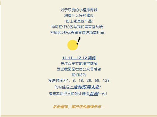 基于此,雙良節(jié)能近期除了試運(yùn)行淘寶商城外,還上線了小程序商城,您可以在此獲取以下信息。