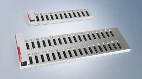 底板有不同的版本可供選擇。緊湊型控制解決方案可以通過高度僅為 110 毫米的帶有功能模塊數(shù)據(jù)接口的 1 排版本底板接入主電源來實現(xiàn)。所需的 24 V 電源和工業(yè) PC 都包含在功能模塊中。2 排版本的底板包括數(shù)據(jù)接口和底層電源接口。倍福將推出更多的底板版本,比如排內(nèi)混合各種接口的版本,以及可以布置為三排的擴(kuò)展版本,用于插接性能更強大的驅(qū)動模塊。