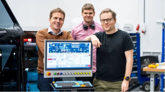 包括 CEO Staffan Nordlinder(左)和軟件工程師 Jakob Sagatowski(右)在內(nèi)的 DP Patterning工程師們在開發(fā)DPP技術(shù)的自動化技術(shù)期間,與瑞典倍福的運動控制產(chǎn)品專家 Marcus Aldrin(中)展開了密切合作。