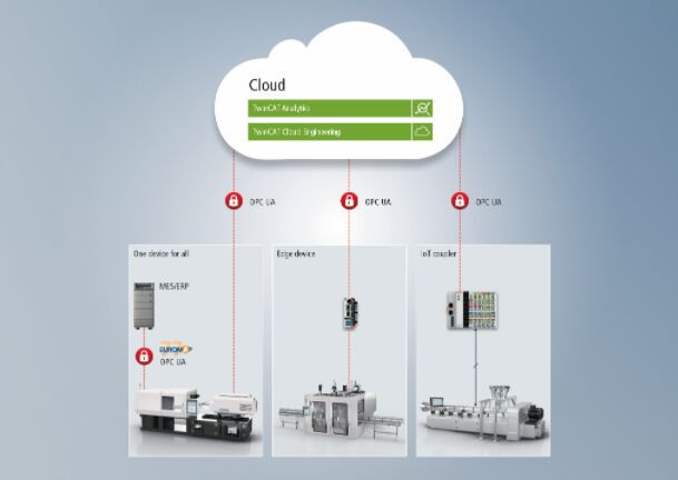 基于 PC 的控制技術(shù),即倍; PC 和 EtherCAT 的控制與驅(qū)動(dòng)技術(shù),為提升塑料加工設(shè)備和系統(tǒng)的可持續(xù)性提供了巨大潛力。軟件基于 TwinCAT 3 Plastic Framework 、 TwinCAT Analytics 數(shù) 據(jù) 分 析 解 決 方 案 和 基 于TwinCAT OPC UA 通信協(xié)議的 Euomap 標(biāo)準(zhǔn)。在硬件方面,例如,用于能源監(jiān)測的 EtherCAT 端子模塊和伺服電機(jī)、驅(qū)動(dòng)作為液壓方案的替代方案,發(fā)揮了至關(guān)重要的作用。