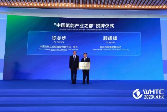 在本屆開幕式上舉行了“中國氫能產(chǎn)業(yè)之都”授牌儀式,中國機(jī)械工業(yè)聯(lián)合會黨委常委張克林宣讀《關(guān)于授予佛山市南海區(qū)“中國氫能產(chǎn)業(yè)之都”稱號的決定》。徐念沙向佛山南海區(qū)區(qū)委書記頒發(fā)“中國氫能產(chǎn)業(yè)之都”榮譽(yù)稱號。