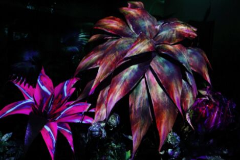 展覽提取雨林植物的特性,利用數(shù)字媒體光影的形式賦予它多元化的藝術(shù)美感。展覽通過巨型奇異花植裝置、數(shù)字光影、雨林植物營(yíng)造以及露營(yíng)元素的完美融合,旨在為城市人提供沉浸式的雨林體驗(yàn),在雨林中了解雨林植物和現(xiàn)象的知識(shí),體會(huì)雨林的美好和重要性。本次展覽的藝術(shù)呈現(xiàn)將與科普講解相結(jié)合,每周五至周日的特別場(chǎng)由城市未來雨林守護(hù)人現(xiàn)場(chǎng)講解。