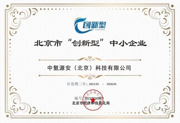 5月23日,近日,中氫源安(北京)科技有限公司成功通過(guò)2023年度北京市創(chuàng)新型中小企業(yè)的認(rèn)定。