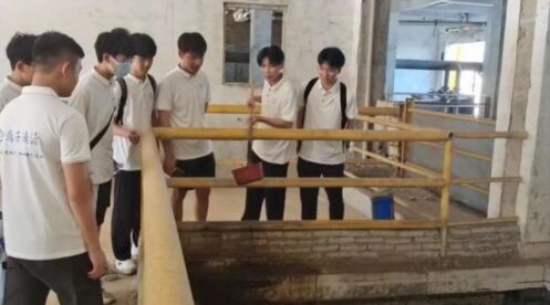 下午,小分隊深入鼎盛漂染織造廢水處理基地,實地調研處理基礎設施建設、處理情況等。期間,團隊成員還與技術人員進行交流,并學習厭氧處理工藝,體驗印染污水處理工序、檢測廢水排放情況,通過對污水處理廠、凈水處理廠的參觀,建立全面和系統(tǒng)的感性認識,熟悉處理廠工藝流程,總體布置及處理構筑物的類型,構造特點,運行和維護情況。深刻體會到工作人員的不易,更加堅定了投入基層實踐的決心。
