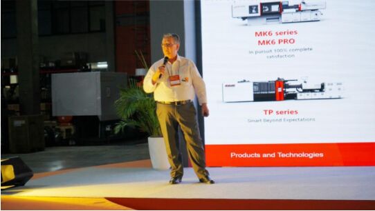 震雄集團董事、策略及營銷總監(jiān)鐘效良先生也到場參與了本次慶典活動。圍繞“創(chuàng)新和新產(chǎn)品”的主題,向現(xiàn)場賓客們?nèi)娣窒砹苏鹦圩⑺軝C的價值優(yōu)勢。并結(jié)合實際案例,深入淺出地介紹了以自動化、智能化為特點的制造升級給企業(yè)帶來的顛覆性變化。