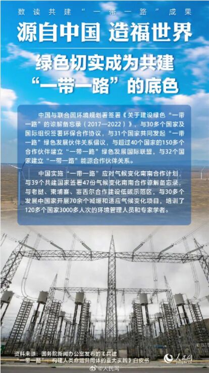 “一帶一路”綠色合作十年成就舉世矚目,中國(guó)為推進(jìn)全球環(huán)境治理作出實(shí)實(shí)在在的貢獻(xiàn),為共建清潔美麗世界提供不竭動(dòng)力。(圖片來(lái)源:人民網(wǎng))