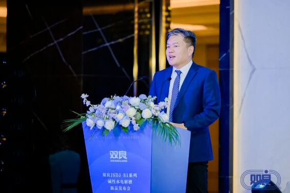 ▲ 雙良集團(tuán)董事局副主席江榮方介紹雙良JSDJ S1系列堿性水電解槽新品
