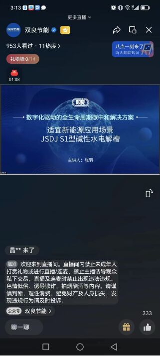 11月24日,雙良氫能源綠電智能制氫項目研發(fā)工程師張羽作為演講嘉賓,為大家分享《數(shù)字化驅(qū)動的全生命周期碳中和解決方案——適宜新能源應用場景JSDJ S1型堿性水電解槽》主題講座。
