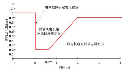 圖1 風(fēng)電機(jī)組低電壓穿越要求