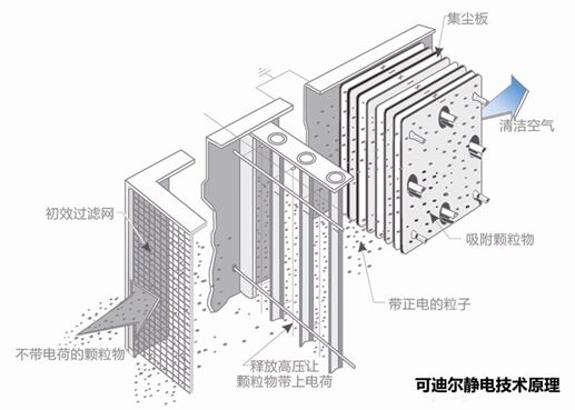 可迪爾為中國帶來卓越的靜電技術(shù) 可迪爾采用高效靜電技術(shù),高效靜電過濾器前端配有初效過濾網(wǎng),雙重過濾,保證凈化效果。 靜電原理:帶有顆粒物的廢氣在高壓電場(chǎng)下進(jìn)行電離,使顆粒物帶上電荷,當(dāng)帶有電荷的顆粒物進(jìn)入靜電集塵區(qū)域時(shí),顆粒物被吸附在靜電板上,完成靜電凈化過程。