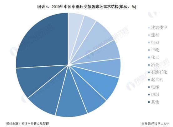 圖表4:2019年中國中低壓變頻器市場(chǎng)需求結(jié)構(gòu)(單位:%)
