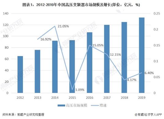 由于高壓變頻器的應(yīng)用領(lǐng)域和高效節(jié)能的市場(chǎng)需求與鼓勵(lì)政策,高壓變頻器市場(chǎng)規(guī)模一直保持著較高的增長率,而中低壓變頻器因?yàn)槭莻(gè)強(qiáng)周期行業(yè),與國家經(jīng)濟(jì)周期緊密相關(guān),受社會(huì)融資增速放緩、中美貿(mào)易戰(zhàn)焦灼不下、3C產(chǎn)品銷售市場(chǎng)低迷,汽車行業(yè)持續(xù)下行等因素影響,低壓變頻器市場(chǎng)同比出現(xiàn)下滑。預(yù)計(jì)2025年到2025年,高壓變頻器的市場(chǎng)規(guī)模將突破200億元,中低壓變頻器則將達(dá)到400億元以上。 我國高壓變壓器增速呈波動(dòng)趨勢(shì) 高壓變壓器主要應(yīng)用領(lǐng)域涉及電力,礦業(yè),水泥,水泥、冶金、石化等行業(yè),可實(shí)現(xiàn)對(duì)各類高壓電動(dòng)機(jī)驅(qū)動(dòng)的風(fēng)機(jī)、水泵、空氣壓縮機(jī)、提升機(jī)、皮帶機(jī)等負(fù)載的軟啟動(dòng)、智能控制和調(diào)速節(jié)能,從而有效提高工業(yè)企業(yè)的能源利用效率、工藝控制及自動(dòng)化水平。其中通用高壓變頻器主要是通過調(diào)節(jié)電機(jī)轉(zhuǎn)速實(shí)現(xiàn)節(jié)能目的,主要應(yīng)用于電力、礦業(yè)、冶金、水泥等領(lǐng)域的風(fēng)機(jī)、泵類傳動(dòng)控制。我國高壓變頻器市場(chǎng)一直保持著較高的增長率。2012-2019年,高壓變頻器市場(chǎng)規(guī)模持續(xù)增長,增速呈波動(dòng)趨勢(shì)。 2019年我國高壓變頻器市場(chǎng)規(guī)模達(dá)到133億元,增速達(dá)到6.4%。預(yù)計(jì)未來我國高壓變頻器市場(chǎng)規(guī)模仍會(huì)繼續(xù)增加。