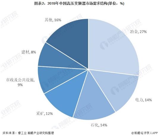 圖表2:2019年中國高壓變頻器市場(chǎng)需求結(jié)構(gòu)(單位:%)