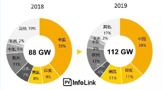 2018年歷經(jīng)了突如其來的531沖擊,整體供應(yīng)鏈現(xiàn)貨價(jià)格從531至今各都下降了30%左右,也讓過熱的光伏行業(yè)氛圍回歸冷靜。在全年組件需求跌至88GW的低谷后,中國(guó)政府又釋出上調(diào)“十三五”規(guī)劃的正向信號(hào)。不僅中國(guó)內(nèi)需樂觀,印度、美國(guó)兩大國(guó)的需求預(yù)計(jì)也有回暖,加上新興市場(chǎng)的助力,預(yù)期能帶動(dòng)2019年全球需求復(fù)蘇到112GW以上。