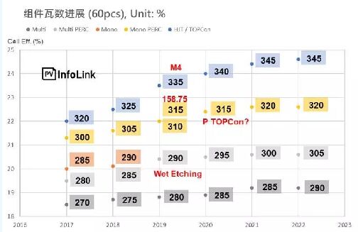 硅片大小與厚度的轉(zhuǎn)變 由于電池提效越發(fā)困難,2018年單、多晶硅片陸續(xù)出現(xiàn)各種大小的嘗試,為了更高的組件瓦數(shù)輸出,硅片、組件的面積變大趨勢(shì)已更加明確,預(yù)期明年超過157mm尺寸的硅片產(chǎn)品能占到全年2成的需求量。 單晶方面,N型組件、臺(tái)灣組件等以小眾、高效等市場(chǎng)為目標(biāo)的廠商,需要再拉高組件瓦數(shù)與性價(jià)比,故幾乎逐漸調(diào)整硅片至M4尺寸。國(guó)內(nèi)企業(yè)則是以晶科為首開始主推158.75mm的尺寸,若陸續(xù)有其他垂直整合大廠跟進(jìn),市場(chǎng)可能分化為垂直整合廠158.75mm與非垂直整合廠維持M2兩種尺寸。多晶硅片面積目前看來較沒有統(tǒng)一化的跡象,多由一體廠自行推動(dòng)。 在厚度的部分,為了降本,有越來越多產(chǎn)線調(diào)適到能夠采用160um厚度的單晶硅片,而多晶在薄化的過程中仍舊屈居劣勢(shì)。 電池片、組件技術(shù)更上一層樓 就像2018年P(guān)ERC取代常規(guī)單晶一樣,SE在2019年也將成為產(chǎn)線的標(biāo)準(zhǔn)配備,接下需視TOPCon在P型單晶電池片上是否能在有突破,但無論如何P型單晶電池片的提效空間已越來越小,后續(xù)組件效率的提升將由組件技術(shù)來接棒達(dá)成。 今年看來,半片組件為所有組件技術(shù)中設(shè)備、良率、實(shí)際產(chǎn)量都相對(duì)成熟的技術(shù)路線,尤其今年下半市場(chǎng)接受度明顯提升,預(yù)期明年會(huì)有更多廠家更大幅度的將產(chǎn)線升級(jí)為半片。 多主柵及疊瓦技術(shù)肯定也是未來的主流技術(shù)趨勢(shì),但由于技術(shù)、設(shè)備成熟度等都還有待時(shí)間醞釀,故PVInfoLink預(yù)期爆發(fā)的時(shí)間點(diǎn)會(huì)是在2020年之后。 在雙面組件部分,雖PERC電池片做成雙面發(fā)電幾乎沒有額外的成本提升,但雙面組件目前市場(chǎng)拓展速度仍稍顯緩慢,明年雙面發(fā)電組件的出貨預(yù)期以中國(guó)內(nèi)需為主,海外則隨終端逐漸認(rèn)知到雙面發(fā)電組件的增益而緩步增長(zhǎng)。
