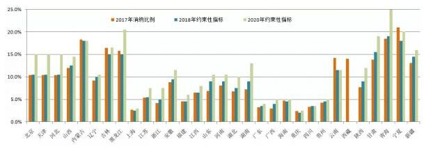 圖2:2017年可再生能源電力消納以及第三輪征求意見的2018、2020年非水可再生能源電力比例指標(biāo)