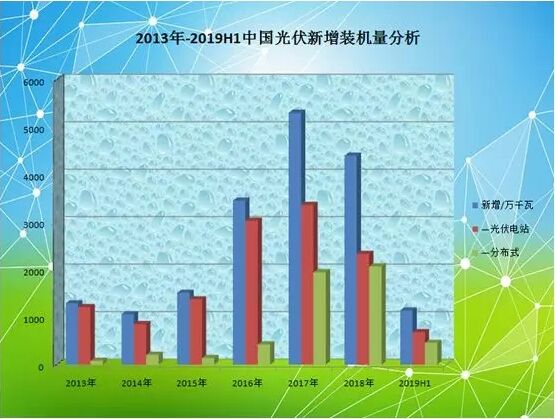 毋庸置疑,光伏產(chǎn)業(yè)已經(jīng)成為中國在世界上的一張新名片。 自2013年以來,在國家政策的大力支持下,中國光伏市場快速崛起,迅速發(fā)展成為全球最大的太陽能光伏市場,取得了舉世矚目的輝煌成就;同時,也一舉擺脫了困擾國內(nèi)光伏產(chǎn)業(yè)多年的“兩頭在外”的尷尬局面。 伴隨著技術(shù)水平不斷提高,光伏發(fā)電成本持續(xù)下降,企業(yè)競爭力日益增強(qiáng),中國光伏產(chǎn)業(yè)規(guī)模不斷擴(kuò)大,市場占有率已位居世界前列,如今已經(jīng)成為我國具有國際競爭優(yōu)勢的戰(zhàn)略性新興產(chǎn)業(yè),在推動能源轉(zhuǎn)型中發(fā)揮著十分重要作用。 從近幾年的數(shù)據(jù)統(tǒng)計顯示,中國光伏新增裝機(jī)量已經(jīng)連續(xù)6年位居全球第一,累計裝機(jī)規(guī)模已連續(xù)4年位居全球第一。 崛起之路得益于國內(nèi)政策的大力扶持,2013年中國光伏市場開啟了新紀(jì)元。 2013年7月15日,為規(guī)范和促進(jìn)光伏產(chǎn)業(yè)健康發(fā)展,國務(wù)院辦公廳下發(fā)了《國務(wù)院關(guān)于促進(jìn)光伏產(chǎn)業(yè)健康發(fā)展的若干意見》,意見提出,2013—2015年,年均新增光伏發(fā)電裝機(jī)容量1000萬千瓦左右,到2015年總裝機(jī)容量達(dá)到3500萬千瓦以上。 隨后三年時間里,中國光伏年增裝機(jī)均在10GW以上。其中,2013年我國新增光伏裝機(jī)量達(dá)到12.92GW,同比增長超過200%,明顯高于預(yù)期。2014年受光伏政策、電站質(zhì)量、投資資金緊張等因素影響,新增裝機(jī)略有減少;到2015年新增裝機(jī)已超過15GW。然而,在分布式光伏裝機(jī)量上,國內(nèi)發(fā)展依然相對遲緩。 2016年12月,為促進(jìn)太陽能產(chǎn)業(yè)持續(xù)健康發(fā)展,國家能源局下發(fā)了《太陽能發(fā)展“十三五”規(guī)劃》,其中提到,至2020年底,太陽能發(fā)電裝機(jī)達(dá)到1.1億千瓦以上。同時,分布式光伏發(fā)展開始明顯提速。 事實上,2016年-2018年,國內(nèi)新增光伏裝機(jī)量開始高歌猛進(jìn),分別達(dá)到34.54GW、53.06GW、44GW。截至2017年底,累計裝機(jī)量已經(jīng)超過130GW,也就是說,“十三五”規(guī)劃目標(biāo)已提前3年完成。