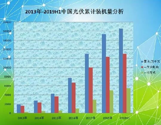 根據(jù)統(tǒng)計數(shù)據(jù)計算,自2013年啟動開始,截止2018年底,中國光伏裝機(jī)總量達(dá)到174.19GW,年復(fù)合增長率超過73%,較之2012年的6.5GW增長約26倍! 不久前,國家發(fā)改委能源研究所研究員王斯成也曾表示,過去10年,中國光伏取得了令人驕傲的成績:從中國光伏全產(chǎn)業(yè)鏈產(chǎn)品的全球市占率來看,2018年,多晶硅占比57.8%,電池和組件均超過70%,而硅錠硅片更是高達(dá)90%左右;從市場資源開發(fā)來看,國內(nèi)市場2107年新增裝機(jī)量53GW,2018年的44GW,穩(wěn)居全球最大的光伏市場。此外,10年來光伏產(chǎn)品和發(fā)電成本下降超過90%,生產(chǎn)技術(shù)水平和設(shè)備國產(chǎn)化率均大幅度提高,光伏年產(chǎn)值已超過5000億元。 旺季來臨 近日,國家能源局發(fā)布了2019年上半年光伏發(fā)電建設(shè)運(yùn)行情況,數(shù)據(jù)顯示,截至2019年6月底,全國光伏發(fā)電累計裝機(jī)185.59GW,同比增長20%,新增11.4GW。其中,集中式光伏發(fā)電裝機(jī)130.58GW,同比增長16%,新增6.82 GW;分布