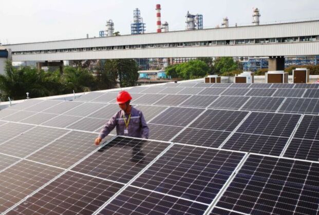 近日,廣州石化廠區(qū)內(nèi)首個(gè)光伏發(fā)電系統(tǒng)正式投入使用。廣州石化積極踐行綠色低碳發(fā)展理念,全力建設(shè)“雙示范”(潔凈能源和轉(zhuǎn)型升級(jí))企業(yè),在生產(chǎn)上執(zhí)行最嚴(yán)格的環(huán)保排放標(biāo)準(zhǔn),在安全綠色高質(zhì)量發(fā)展項(xiàng)目中,推進(jìn)實(shí)施綠色能源,在新建煉油中心控制室和職工食堂樓頂增設(shè)光伏發(fā)電設(shè)施,使用面積約1400平方米,裝機(jī)容量為146千瓦。