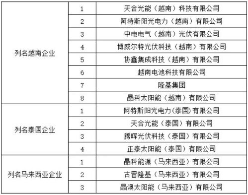 2012年,美國對(duì)中國光伏電池及組件進(jìn)行“雙反”調(diào)查,并對(duì)中國相關(guān)企業(yè)征收了14.78%至15.97%的反補(bǔ)貼稅,以及18.32%至249.96%的反傾銷稅,由于“雙反”稅的界定方式在大陸以光伏組件組裝地為原產(chǎn)國,所以中國廠商為了規(guī)避“雙反”稅,紛紛選擇在東南亞、美洲、南美、墨西哥等地投資建廠,可以理解為,中國企業(yè)披上了東南亞的“馬甲”。