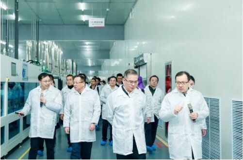 儀式結(jié)束后,與會(huì)領(lǐng)導(dǎo)們一行走進(jìn)生產(chǎn)車(chē)間,詳細(xì)了解TOPCon太陽(yáng)能電池的整套生產(chǎn)工藝流程。