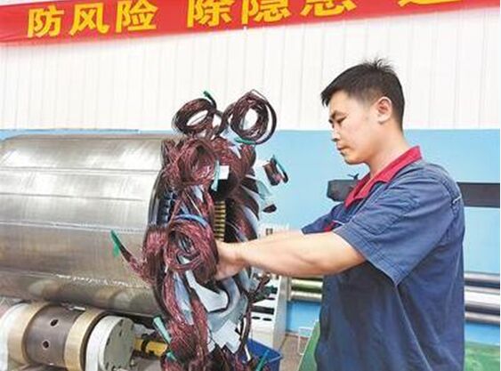 9月1日,河北電機股份有限公司員工正在變頻高效高壓電機數(shù)字化車間進行電機生產(chǎn)。