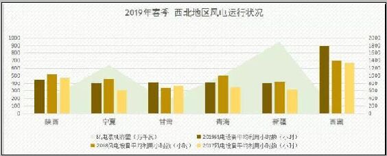 從設(shè)備平均利用小時數(shù)上看,2019年第一季度,華北地區(qū)風(fēng)電設(shè)備平均利用小時數(shù)普遍較高,其中北京最高達到683小時、天津較低為578小時。與去年同期相比,華北區(qū)域風(fēng)電設(shè)備平均利用小時數(shù)出下了較大幅度的下滑,其中山西、山東、河北下滑幅度分別達到183小時、144小時、116小時。 中電傳媒電力傳媒數(shù)據(jù)研發(fā)中心跟蹤顯示,受到清潔能源消納、及風(fēng)電上網(wǎng)電價政策影響,第一季度,內(nèi)蒙古錫盟100萬千瓦風(fēng)電項目、山西運城、大同風(fēng)電項目、河北張家溝18個風(fēng)電項目、山東2各風(fēng)電項目相繼落地,日前,內(nèi)蒙古自治區(qū)發(fā)改委發(fā)布的《關(guān)于2019-2021年自治區(qū)級重大項目滾動實施計劃》顯示,2019-2021年重點建設(shè)風(fēng)電項目共計23個,總建設(shè)規(guī)模12655.1MW,這意味著內(nèi)蒙古風(fēng)電裝機容量在近3年內(nèi)凈增長44%,華北地區(qū)即將迎來4年來最大風(fēng)電裝機潮。另外,華北地區(qū)電力現(xiàn)貨市場的穩(wěn)步提速,2018年12月24日,山西啟動現(xiàn)貨市場模擬試運行,今年6月,蒙西、山東也即將同步啟動,現(xiàn)貨市場為該地區(qū)風(fēng)電建設(shè)帶來良好預(yù)期。 隨著風(fēng)電裝機規(guī)模的快速增長,華北地區(qū)風(fēng)電消納壓力也持續(xù)增大。第一季度,各地風(fēng)電設(shè)備平均利用小時數(shù)出現(xiàn)不同程度下滑態(tài)勢。預(yù)計,穩(wěn)步上漲的裝機熱潮將持續(xù)沖擊設(shè)備平均利用小時數(shù),在全社會用電量增速放緩,現(xiàn)貨市場尚未完全啟動條件下,華北地區(qū)風(fēng)電消納壓力將面臨短暫壓力。 西北區(qū)域即將建設(shè)一批重點風(fēng)電項目