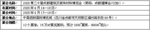 2020第二十屆成都建筑及裝飾材料博覽會(huì) 參展邀請(qǐng)函 2020年4月17—19日中國(guó)西部國(guó)際博覽城