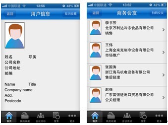 (二)商務(wù)會(huì)友 掃碼功能不僅能識(shí)別產(chǎn)品的二維碼,還可以拍攝參展人員或觀眾胸卡上的條形碼。只需輕輕一拍,便可獲取對(duì)方的身份信息,并自動(dòng)記錄在“商務(wù)會(huì)友”里,省去交換名片的環(huán)節(jié)。(見(jiàn)圖3、4)