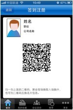 (八)簽到注冊(cè) 注冊(cè)智會(huì)賬號(hào)后,會(huì)在“簽到注冊(cè)”(見(jiàn)圖13)生成個(gè)人信息的二維碼,您可憑個(gè)人二維碼+名片到現(xiàn)場(chǎng)免費(fèi)換取觀眾胸卡,快速入場(chǎng)參觀。