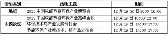 成都市政府主辦,以“節(jié)能環(huán)保 西部新機(jī)遇”為主題的2013中國成都節(jié)能環(huán)保產(chǎn)業(yè)博覽會(huì)將于12月19日—20在成都市金堂縣舉行。成都市經(jīng)委、市科技局、市環(huán)保局、市投促委、市博覽局、金堂縣人民政府、省環(huán)境保護(hù)產(chǎn)業(yè)協(xié)會(huì)等部門聯(lián)合承辦。歡迎國內(nèi)外相關(guān)領(lǐng)域企事業(yè)單位及專業(yè)人士屆時(shí)蒞臨博覽會(huì)參觀參展,共享西部行業(yè)盛會(huì),助推節(jié)能環(huán)保產(chǎn)業(yè)發(fā)展。(更多展會(huì)詳情請關(guān)注大會(huì)官網(wǎng):http://www.cdesep.com) 專業(yè)展覽與行業(yè)論壇互動(dòng) 近300家國內(nèi)外節(jié)能環(huán)保領(lǐng)域企業(yè)將攜帶涉及水處理、環(huán)境監(jiān)測、固廢處理、節(jié)能等領(lǐng)域的技術(shù)設(shè)備來蓉展出參展,舉行“2013中國成都節(jié)能環(huán)保產(chǎn)業(yè)高峰會(huì)議”、“環(huán)保技術(shù)與產(chǎn)業(yè)發(fā)展研討會(huì)”、“節(jié)能環(huán)保產(chǎn)業(yè)新技術(shù)、新產(chǎn)品發(fā)布會(huì)”等論壇活動(dòng)。