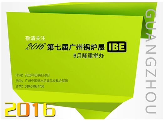 2016第七屆廣州鍋爐展暨:2016第七屆中國國際節(jié)能環(huán)保鍋爐展覽會(簡稱IBE),由中國低碳產(chǎn)業(yè)協(xié)會環(huán)保鍋爐委員會發(fā)起;擬邀8家行業(yè)權(quán)威組織機(jī)構(gòu):1萬平米展出面積,300余家優(yōu)秀廠家、2萬專業(yè)觀眾即將于2016年6月6日-8日集聚廣州•中國進(jìn)出品商品交易會展館。 目前組委會已開放在線登陸平臺,需要了解項目的企事業(yè)單位及個人均可通過登陸:http://www.guoluzhan.com/6/cgdj.asp進(jìn)行免費參觀登記,需要發(fā)布項目的廠家也可以登陸http://www.guoluzhan.com/6/czdj.asp進(jìn)行展位預(yù)選提交。詳情咨詢:010-57027760,敬請關(guān)注!