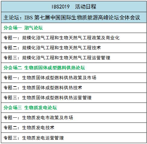 【IBS2019會(huì)議倒計(jì)時(shí)10天】 IBS2019第七屆中國(guó)國(guó)際生物質(zhì)能源高峰論壇將于2019年4月11日在上海召開(kāi)! 【大會(huì)議程】 作為行業(yè)內(nèi)極具影響力的生物質(zhì)高峰論壇,每年的IBS都會(huì)有來(lái)自行業(yè)內(nèi)知名的眾多廠商參展并展示最新的生物質(zhì)科技。那么問(wèn)題來(lái)了,今年的IBS2019論壇又有哪些新變化呢?又將為我們帶來(lái)哪些驚喜?接下來(lái),就跟著小編一起來(lái)見(jiàn)證IBS 2019論壇的獨(dú)特魅力! 與去年大會(huì)相比,IBS2019會(huì)完善生物質(zhì)能產(chǎn)業(yè)鏈布局,全力拓展整個(gè)生物質(zhì)能源市場(chǎng)現(xiàn)場(chǎng),將涵蓋生物質(zhì)沼氣、發(fā)電、固體燃料三大領(lǐng)域,涵蓋鍋爐、燃燒設(shè)備,成型燃料及設(shè)備,生物質(zhì)氣化、生物質(zhì)供熱、生物質(zhì)發(fā)電、熱電聯(lián)產(chǎn)等配套設(shè)備,沼氣、生物燃?xì),垃圾處理,生物液體燃料,秸稈利用設(shè)備等。