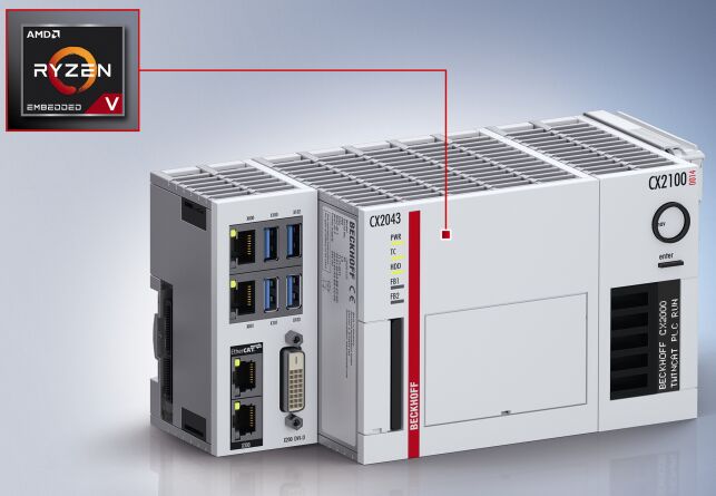- CX2043:高性能嵌入式控制器,安裝有滾珠軸承和速控風扇,搭載 AMD Ryzen™ V1807B CPU(時鐘頻率:3.35 GHz,四核)